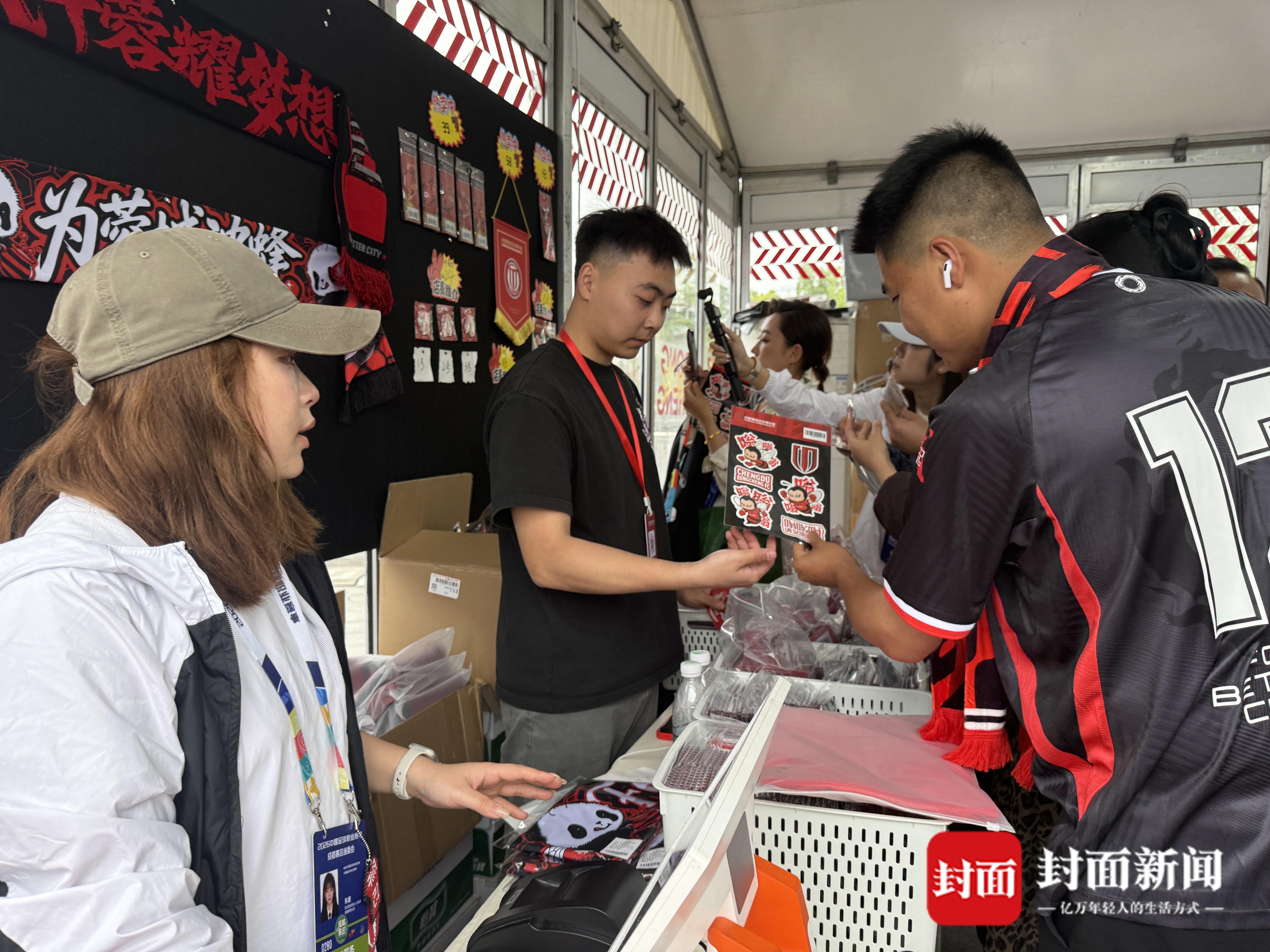 赛场外,成都蓉城俱乐部文创店里,挤满了来自天南海北的球迷,冰箱贴、围巾、短袖......手里的文创产品,成为球迷们展示心中热爱的符号。