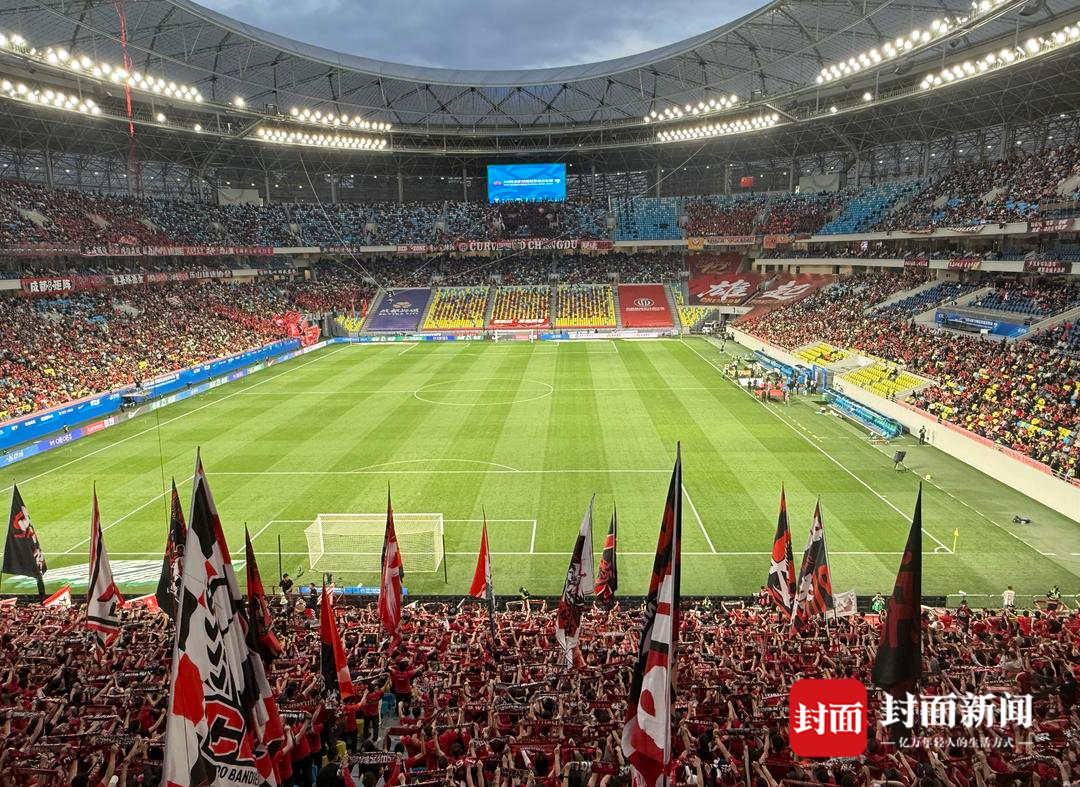 作为球场上的第12人,成都蓉城球迷一向以热情文化著称,呐喊助威“拉满”全场,其排山倒海的阵势让五粮液文化体育中心专业足球场被称为“魔鬼主场”。